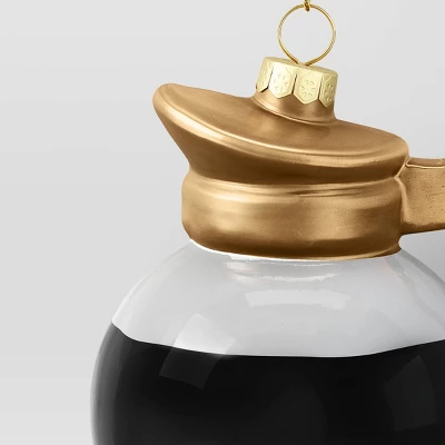 Brew up some holiday cheer with this Glass Coffee Pot Ornament from Wondershop™. This glass ornament features a clear coffee pot with dark brown coffee and a gleaming gold-tone cap for a festive look. It adds a celebratory touch to your holiday setup and also includes a hanging loop for easy placement on your tree.