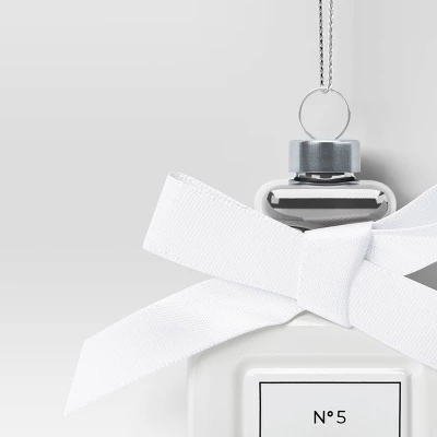 Elevate the visual appeal of your festive tree with the Christmas Glass White Perfume Ornament from Wondershop™. The ornament comes in a ‘Love Paris Parfum’ glass perfume shape with bow-tie detailing for a fun look that brings more excitement to your display. Plus, the lightweight ornament is made from glass and features a top loop for easy display.